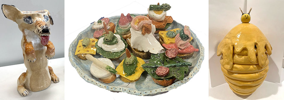 Den abgebildeten Hund als Gefäßfigur hat eine Schülerin der 9.Klasse erstellt. Den Honigtopf ein Mädchen aus Klasse 7.